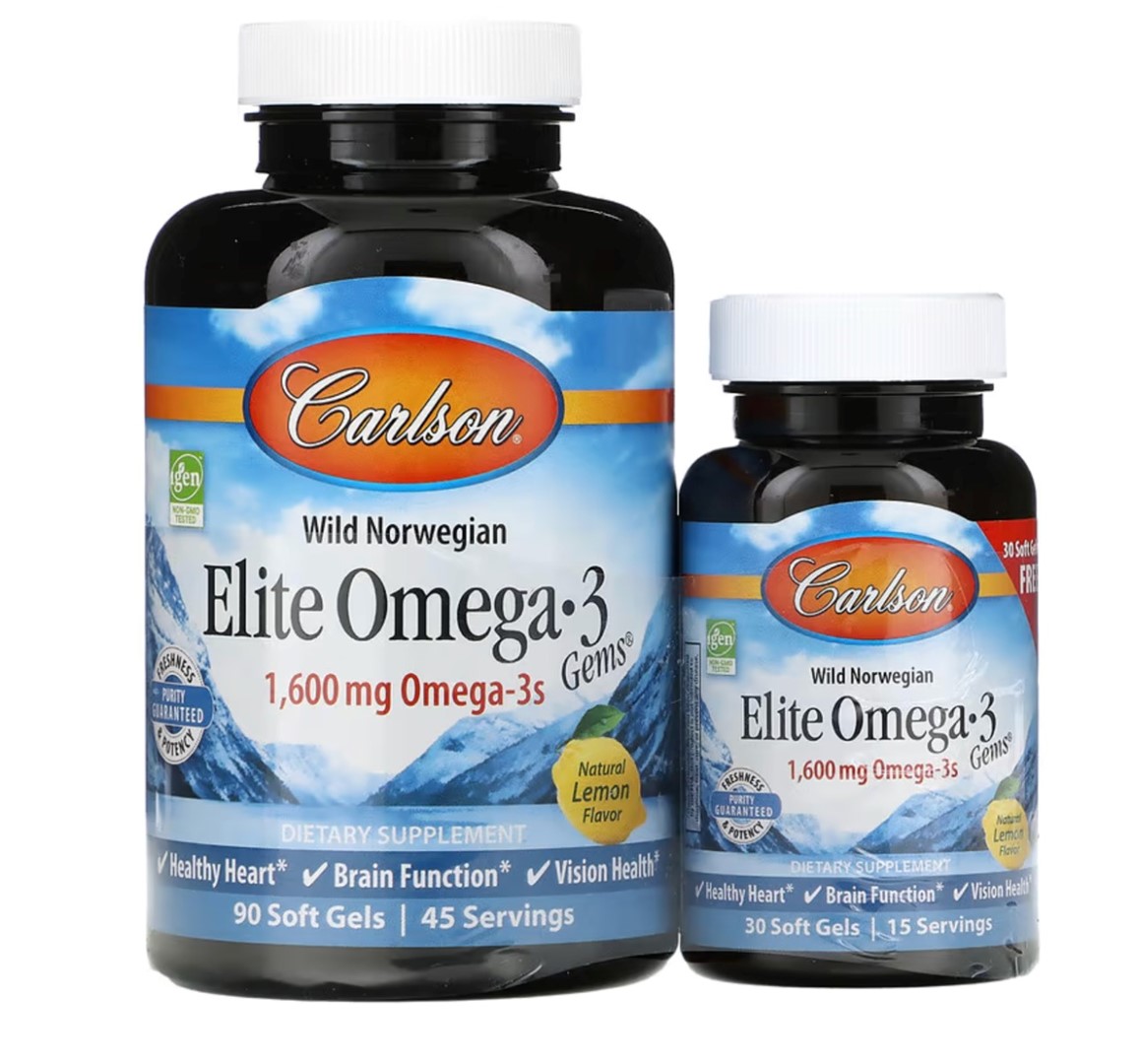 Carlson Labs Elite Omega 3 1600mg 90 + 30 kap...