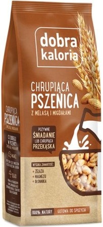 Dobra kaloria Chrupiąca gryka z melasą i migdałami to wysokiej jakości produkt, który powstał z połączenia wyłącznie 3 składników: ekspandowanych ziaren gryki, melasy buraczanej oraz migdałów. Stanowi idealne rozwiązanie na pełnowartościową przekąskę, a w połączeniu ze źródłem białka/tłuszczu – syty posiłek.