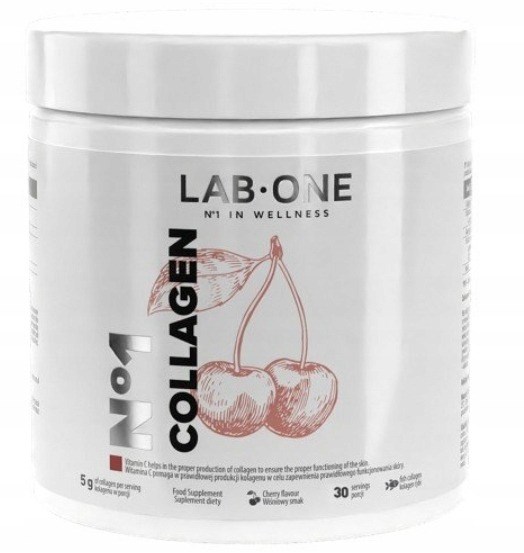 LAB ONE N°1 Collagen Wiśnia 198 g to suplement diety w formie proszku zawierający kolagen o intensywnym smaku wiśni, charakteryzujący się przyjemnym, owocowym aromatem i starannie opracowaną formułą. Produkt wyróżnia się wyrazistym smakiem wiśni i łatwą rozpuszczalnością w płynach, która pozwala na przygotowanie orzeźwiającego napoju kolagenowego o charakterystycznym, słodko-kwaśnym smaku.