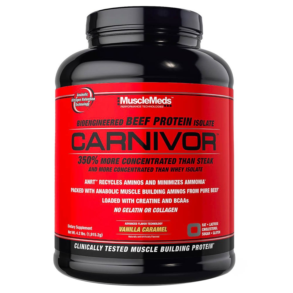 Suplement diety MuscleMeds Carnivor o smaku waniliowo karmelowym 1915 g to produkt dostarczający hydrolizowanego izolatu białek wołowych wzbogacony o aminokwasy rozgałęzione BCAA, kreatynę i błonnik. Po zalaniu proszku wodą powstaje pyszny waniliowo-karmelowy shake pełen wartościowych składników.