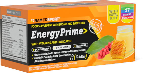 Suplement diety Namedsport Energy Prime to wysokiej jakości produkt, który zawiera mieszaninę cennych substancji aktywnych – mleczka pszczelego, guarany, cytryńca chińskiego, witaminy B12, witaminy D, kwasu foliowego, niacyny i L-karnityny. Preparat ten ma formę wygodnych do stosowania niewielkich buteleczek o pojemności 10 ml.