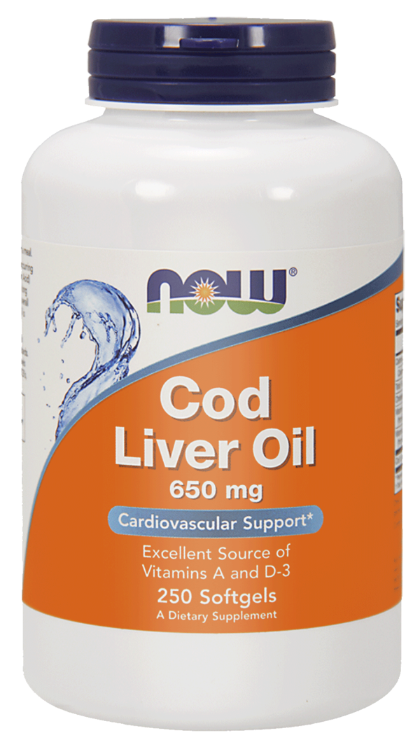 Now Foods Cod Liver Oil 650 mg to suplement zawierający olej z wątroby dorsza. Nie zawiera sztucznych barwników i aromatów. Bez GMO. Dzięki naturalnym dodatkom nie posiada nieprzyjemnego rybiego posmaku. Olej z wątroby dorsza arktycznego, czyli tran, jest źródłem cennych kwasów tłuszczowych Omega 3 – EPA i DHA oraz naturalnych witamin A i D.