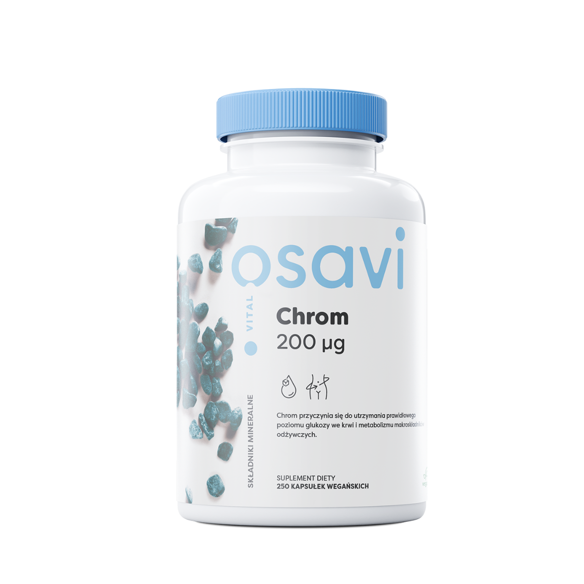 Suplement diety Osavi Chrom to wysokiej jakości produkt, który zawiera wysoce przyswajalny i dobrze wchłanialny pikolinian chromu. Związek ten jest bardzo dobrym źródłem chromu. Pierwiastek ten jest jednym z mikroelementów w organizmie człowieka, jednak mimo niewielkiego udziału procentowego w masie człowieka, pełni niezwykle ważne role. Suplement od Osavi ma prosty i bezpieczny skład, powstały zgodnie z ideą clean label, czyli czystej etykiety. Jego zaletą jest również biodegradowalne opakowanie powstałe w 30% z trzciny cukrowej oraz skład odpowiedni dla wegan i wegetarian.