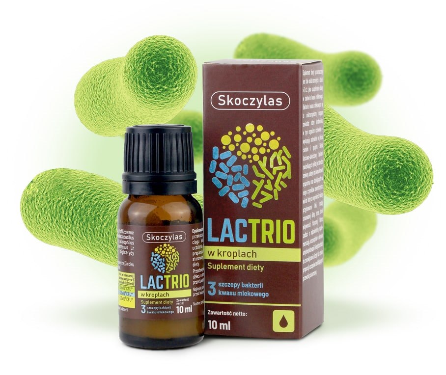Skoczylas Lactrio probiotyk w kroplach 10 ml to innowacyjny suplement diety. Zawiera on specjalnie wyselekcjonowane szczepy bakterii.