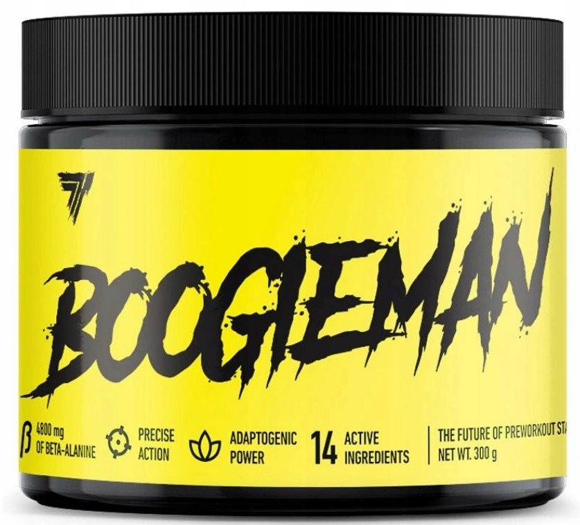 Suplement diety Trec Boogieman to wysokiej jakości produkt, który został stworzony po to, by wspierać pracę mięśni podczas treningu. Zawiera niezwykle dobraną, unikalną mieszaninę składników, takich jak: witaminy (B1, B3, B6, B12), minerały (magnez), aminokwasy – cytrulina, tauryna, arginina, tyrozyna – kofeina, ekstrakty z różeńca górskiego i żeń-szenia koreańskiego. Preparat ten jest bezpieczny i nie zawiera żadnych podejrzanych czy szkodliwych substancji. Powstał na bazie naturalnych surowców. Ma postać proszku o pysznym smaku owoców tropikalnych.